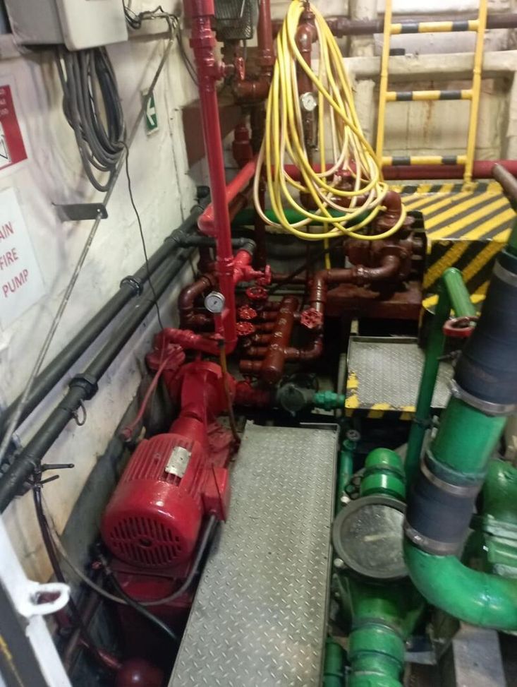 External firefighting: 1 x pump 205 m3/h fitted with monitor